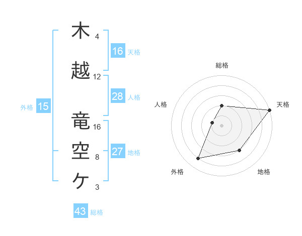 木越 竜空ケさんを姓名の画数から五運を鑑定
