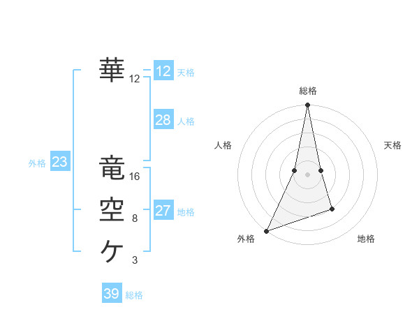 華 竜空ケさんの総格は39画の5点!