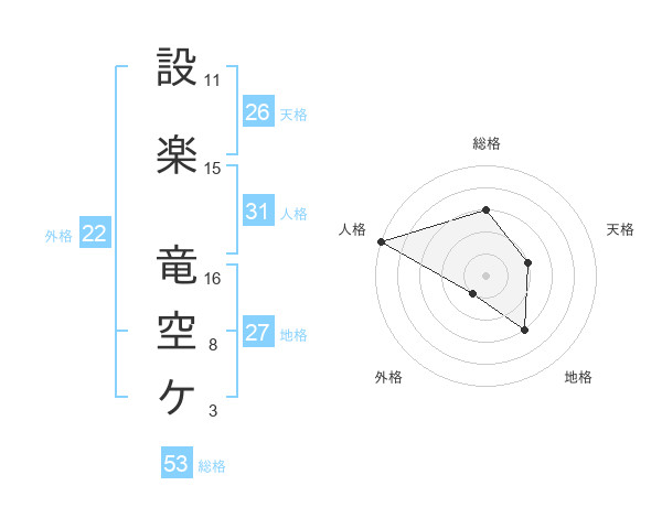設楽 竜空ケさんを姓名の画数から五運を鑑定