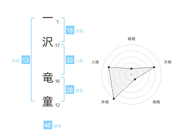 一沢 竜童さんを姓名の画数から五運を鑑定
