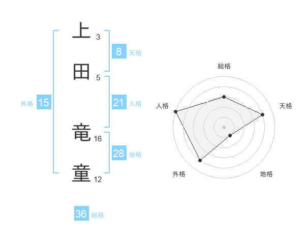 上田 竜童さんの天格は8画の4点!