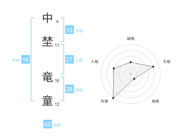 中埜 竜童さんを姓名の画数から五運を鑑定