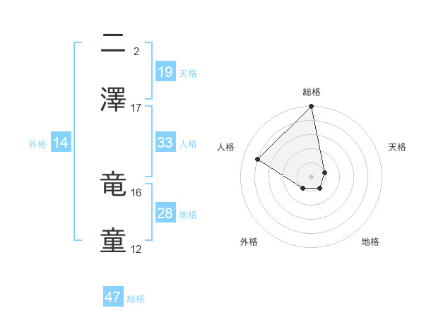 二澤 竜童さんの総格は47画の5点!