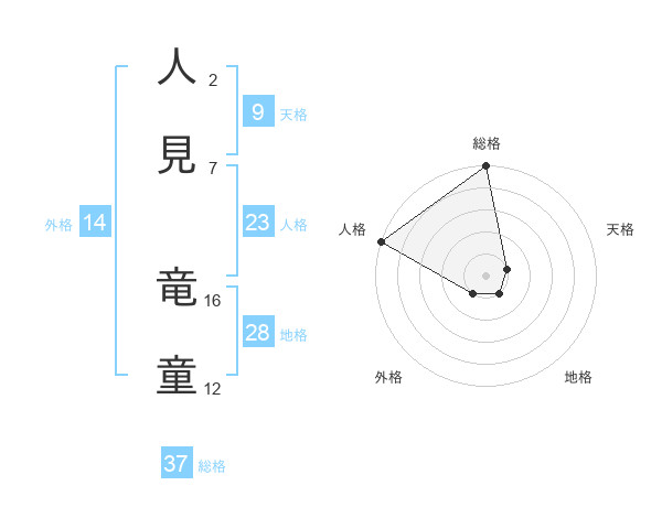 人見 竜童さんの総格は37画の5点!