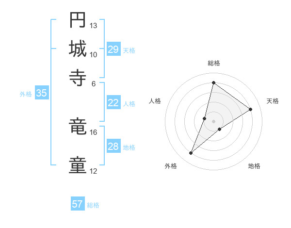 円城寺 竜童さんの総格は57画の4点!