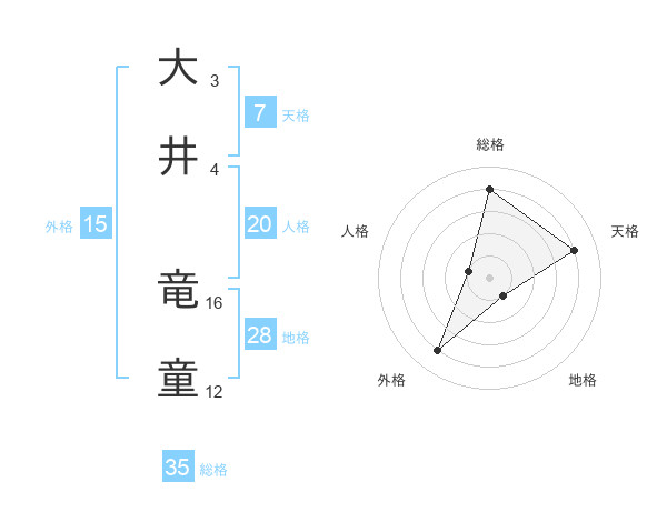 大井 竜童さんの総格は35画の4点!
