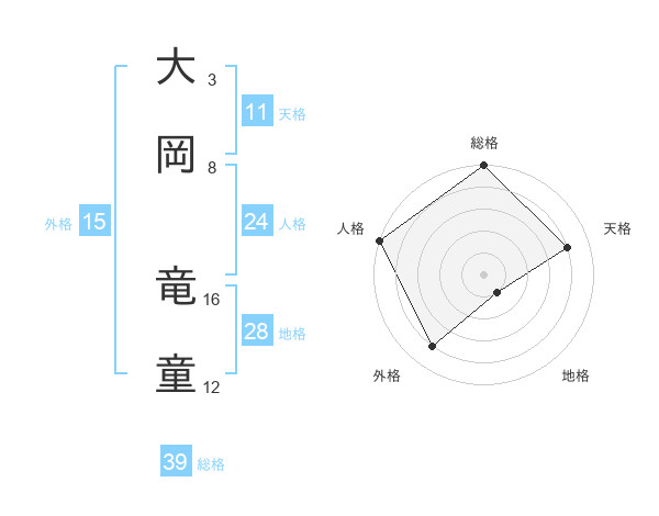 大岡 竜童さんの総格は39画の5点!