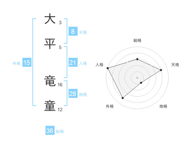 大平 竜童さんの天格は8画の4点!