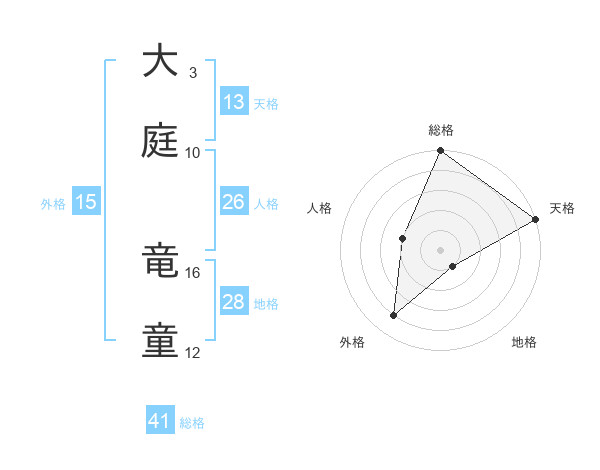 大庭 竜童さんの総格は41画の5点!