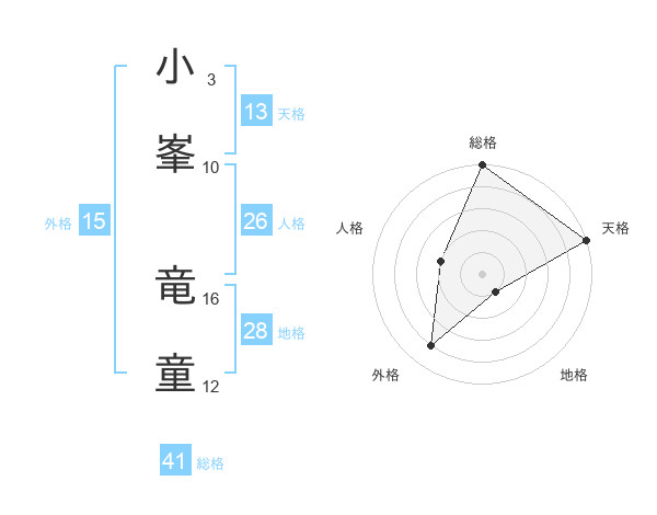 小峯 竜童さんの天格は13画の5点!