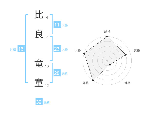 比良 竜童さんの外格は16画の5点!