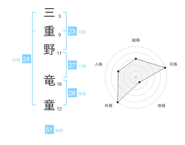 三重野 竜童さんを姓名の画数から五運を鑑定