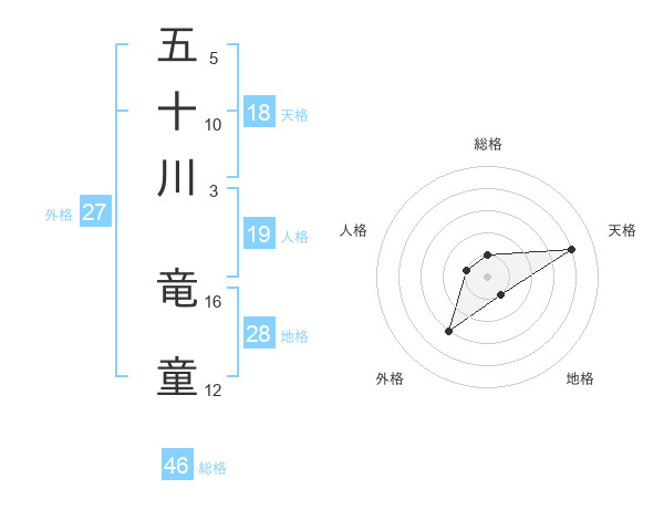五十川 竜童さんを姓名の画数から五運を鑑定