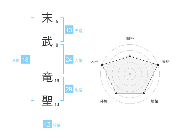 末武 竜聖さんの天格は13画の5点!