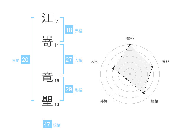 江嵜 竜聖さんを姓名の画数から五運を鑑定