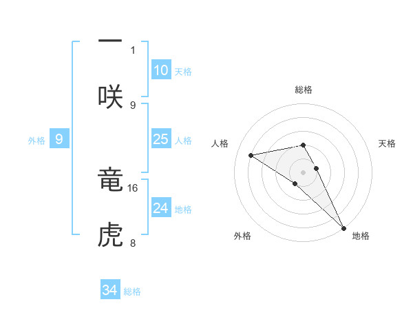 一咲 竜虎さんの天格は10画の1点!
