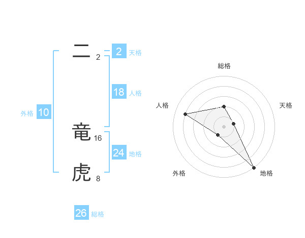 二 竜虎さんの総格は26画の2点