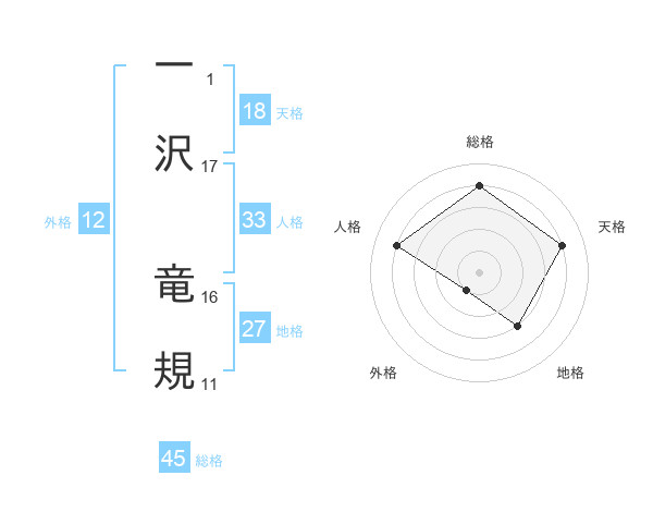 一沢 竜規さんを姓名の画数から五運を鑑定