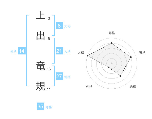 上出 竜規さんの総格は35画の4点!
