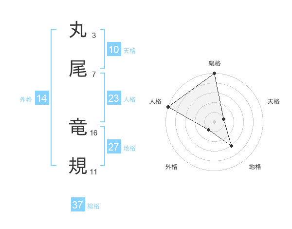 丸尾 竜規さんの総格は37画の5点!