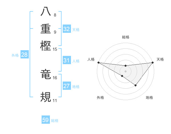 八重樫 竜規さんを姓名の画数から五運を鑑定