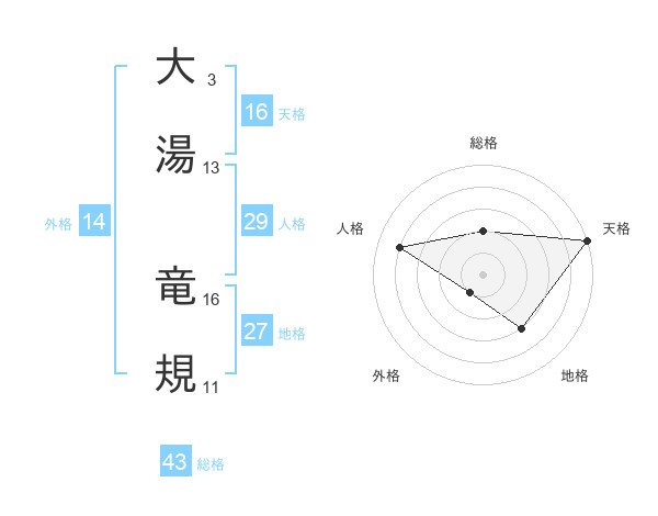 大湯 竜規さんを姓名の画数から五運を鑑定