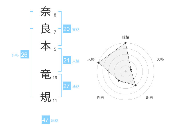 奈良本 竜規さんを姓名の画数から五運を鑑定