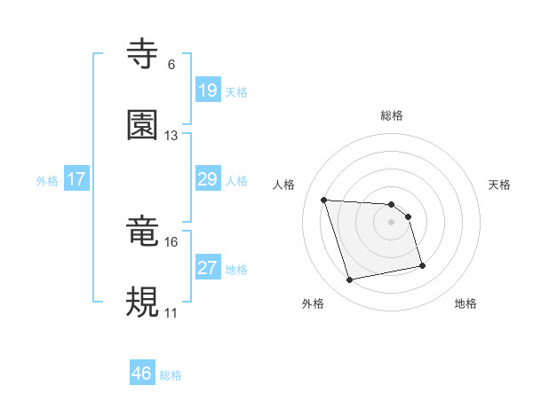 寺園 竜規さんの地格は27画の3点!