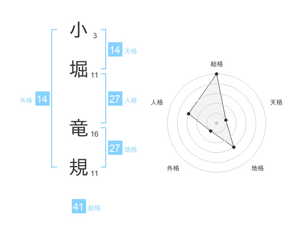 小堀 竜規さんを姓名の画数から五運を鑑定