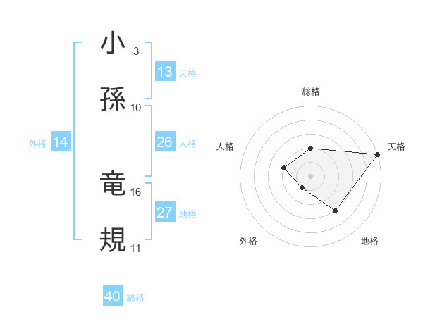 小孫 竜規さんの天格は13画の5点!