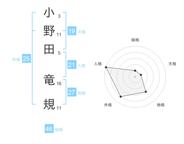 小野田 竜規さんを姓名の画数から五運を鑑定