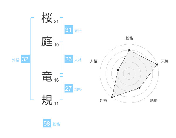 桜庭 竜規さんを姓名の画数から五運を鑑定