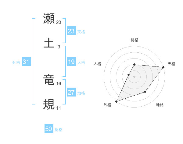 瀬土 竜規さんを姓名の画数から五運を鑑定