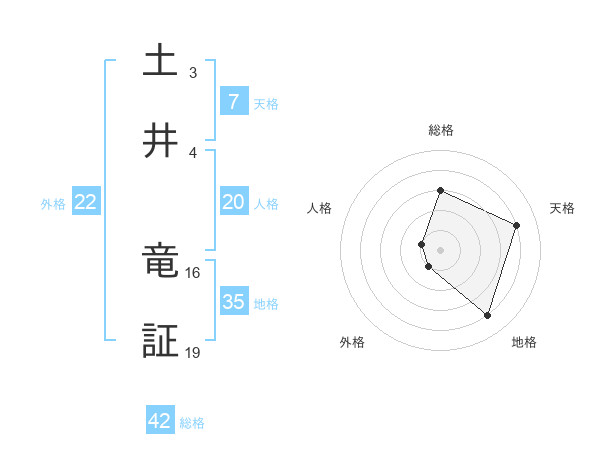 土井 竜証さんの総格は42画の3点!