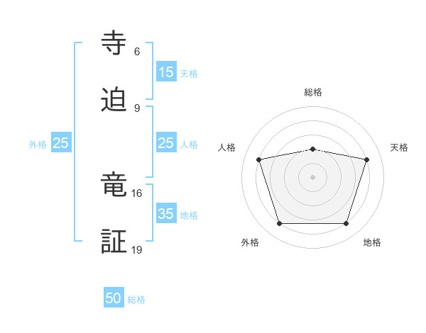 寺迫 竜証さんの総格は50画の2点!