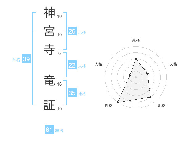 神宮寺 竜証さんの総格は61画の3点!