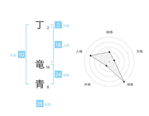 丁 竜青さんの総格は26画の2点!