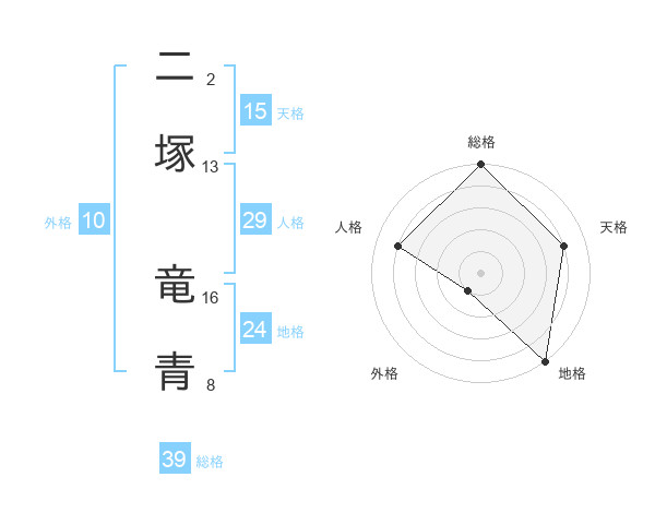 二塚 竜青さんの総格は39画の5点!