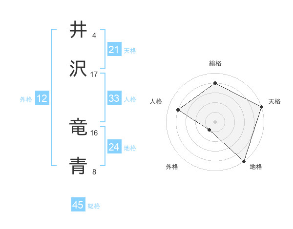 井沢 竜青さんの総格は45画の4点!