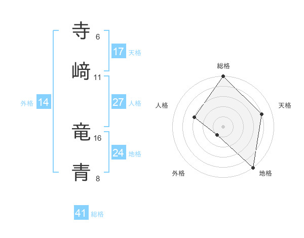寺﨑 竜青さんを姓名の画数から五運を鑑定