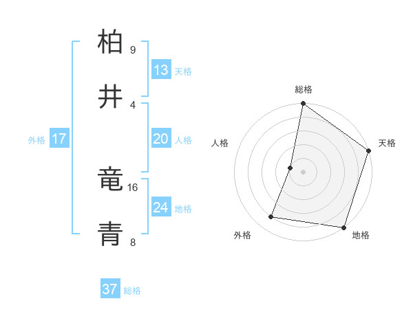 柏井 竜青さんの総格は37画の5点!