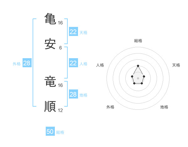 亀安 竜順さんの総格は50画の2点!