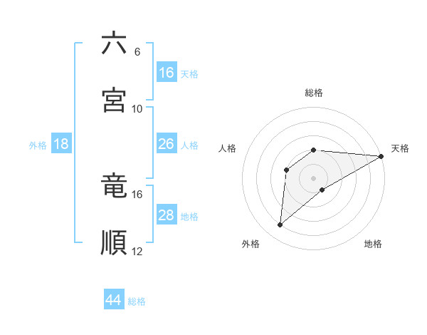 六宮 竜順さんを姓名の画数から五運を鑑定