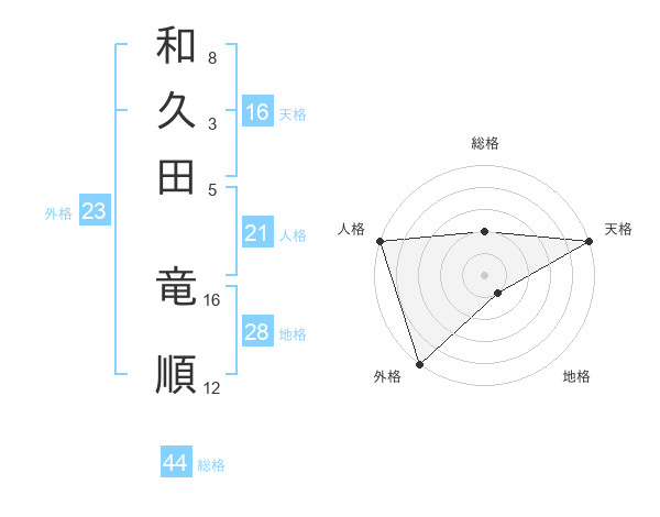 和久田 竜順さんを姓名の画数から五運を鑑定