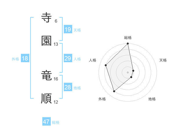 寺園 竜順さんの総格は47画の5点!