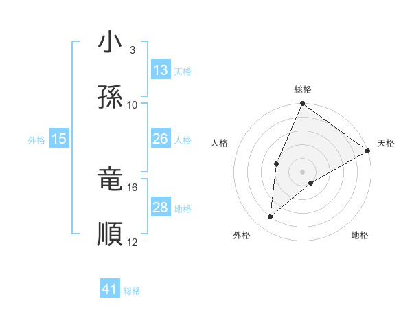 小孫 竜順さんを姓名の画数から五運を鑑定