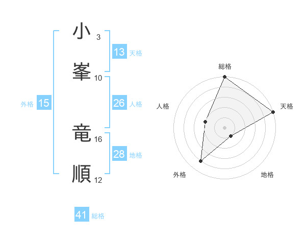 小峯 竜順さんの天格は13画の5点!