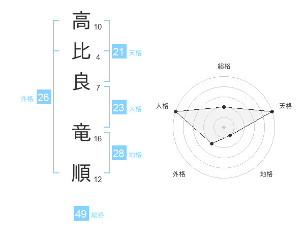 高比良 竜順さんの天格は21画の5点!