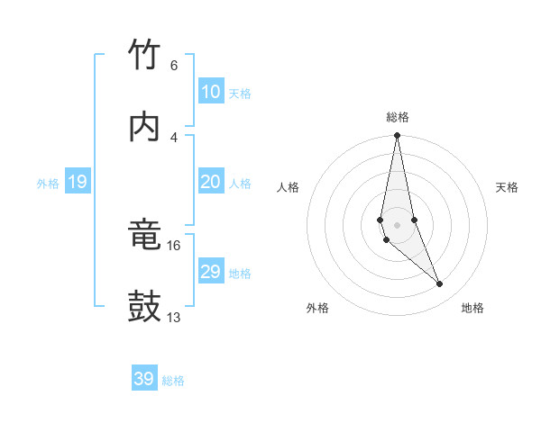 竹内 竜鼓さんを姓名の画数から五運を鑑定