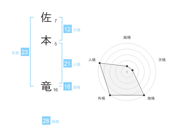 佐本 竜さんの天格は12画の1点!